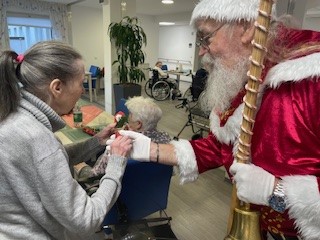 Alle strahlten und freuten sich, als Nikolaus Ihnen einen Schokoladennikolaus schenkte. Dabei erzählte der ein oder andere Bewohner von alten Erinnerungen und kam mit Nikolaus ins Gespräch.